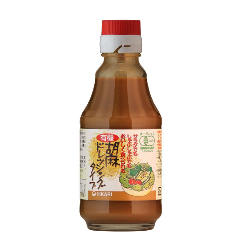 サラダでもしゃぶしゃぶでも美味しく食べられるコクのあるしっかりした味わいの有機JAS認証の胡麻ドレッシングタイプです。